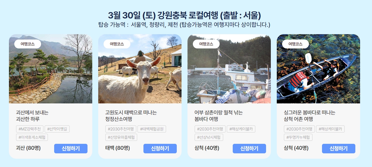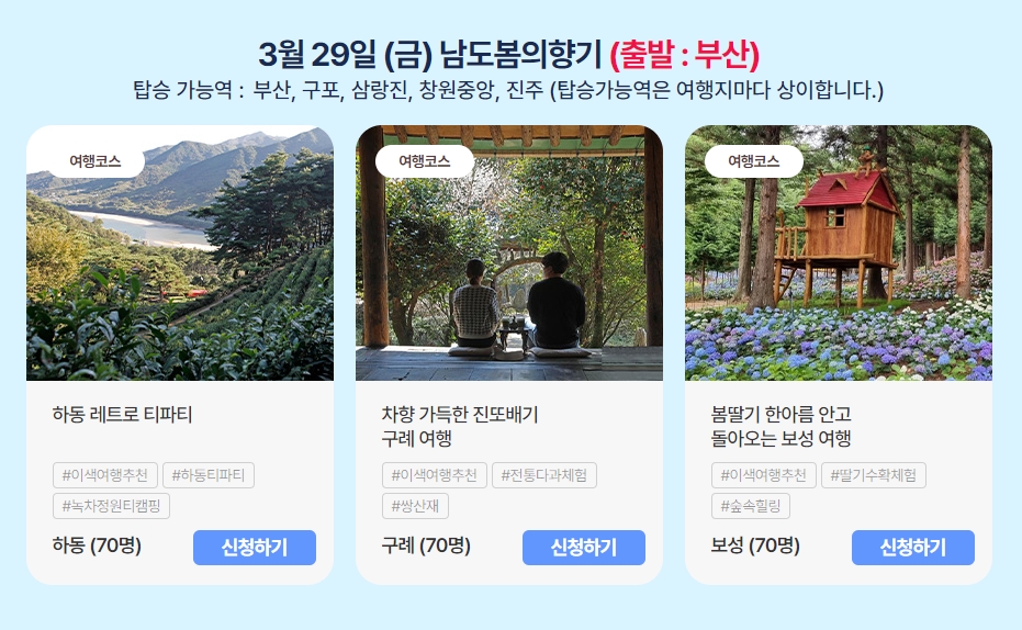 접수기간이 3월 17일 까지라 빨리 신청하는 것이 좋겠습니다. 서울출발은 토요일여행이라 시간도 적절히 날씨도 딱 좋을 것 같습니다.